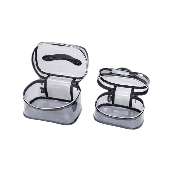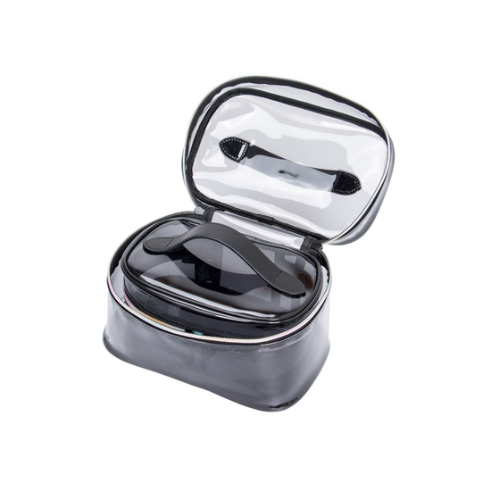 سعة تخزين مثالية: الحقيبة الأكبر مخصصة لمستلزمات العناية بالبشرة، بينما الحقيبة الصغيرة تحفظ مستحضرات المكياج الأساسية.