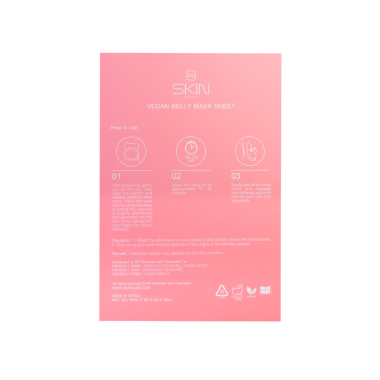ضعي القناع: افتحي الكيس، وافردي القناع وضعيه على منطقة البطن. اضغطي بلطف لتثبيته.