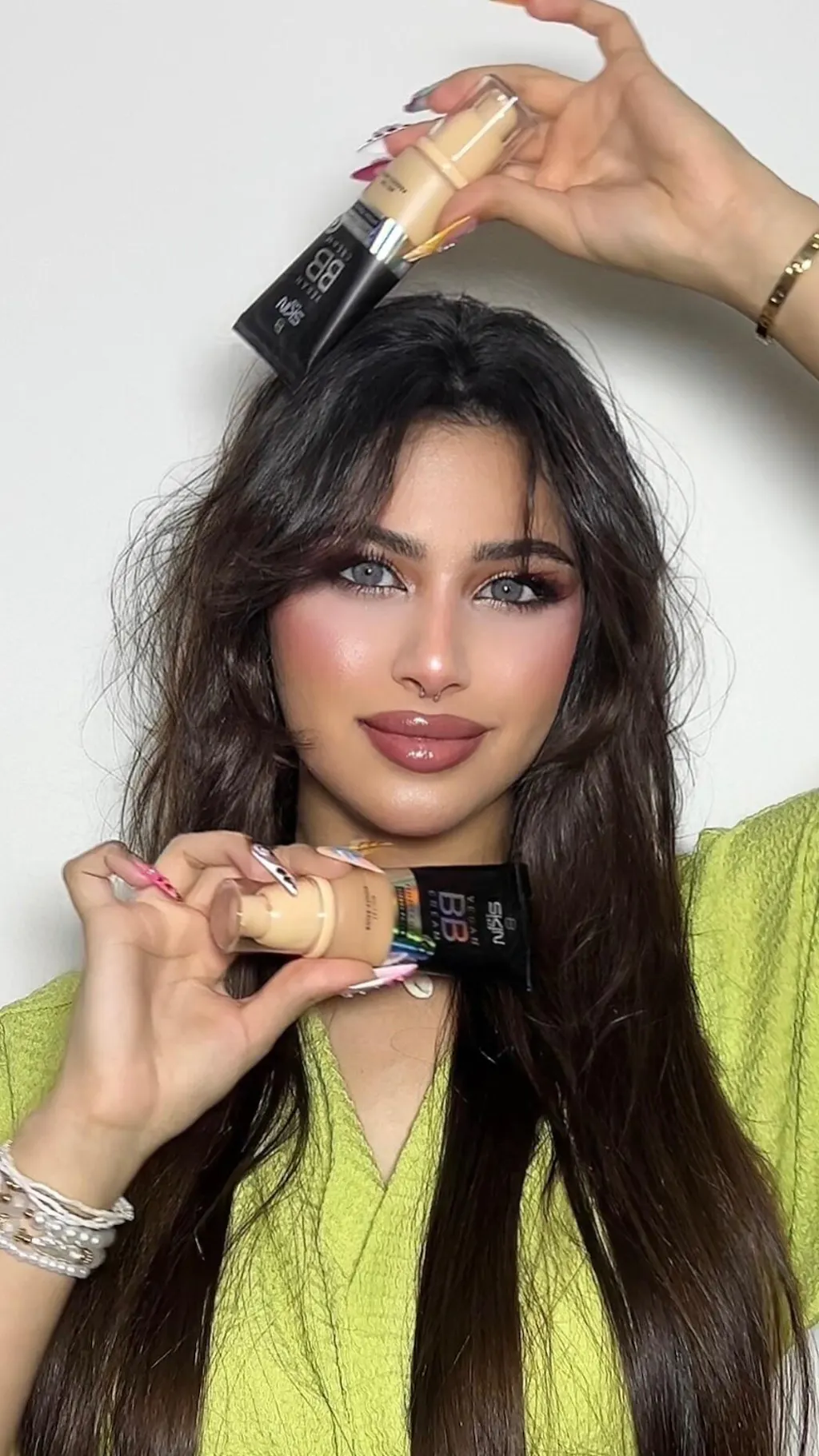 ضعي نقاطًا من BB كريم سكين لود على 5 مناطق في الوجه: الجبهة، الأنف، الخدين، والذقن